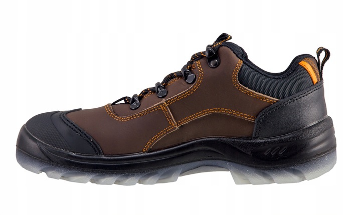 Lekkie PÓŁBUTY bezpieczne w klasie bezpieczeństwa S3, zostały wykonane z bydlęcej skóry typu "szalony koń (crazy horse)" o grubości nie mniejszej niż 2,2mm. Konstrukcja cholewki jest wyjątkowo przyjazna dla stopy, nawet przy długotrwałym użytkowaniu. Wkładka profilowana do kształtu stopy, wchłania wilgoć. Dzięki temu buty są bardzo wygodne, lekkie i oddychające. Zapewniają wysoki komfort użytkowania.